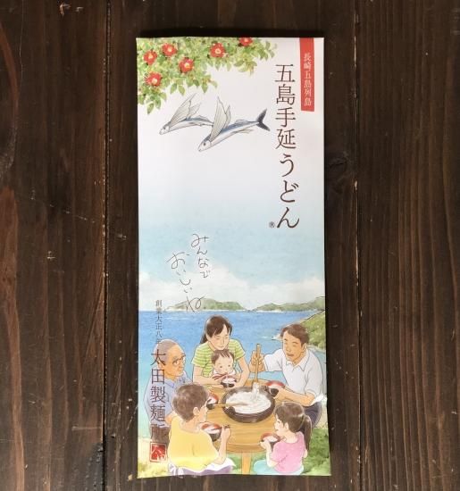 和やかに五島うどんを囲む家族と島の風景をイメージしたデザインのパッケージです。